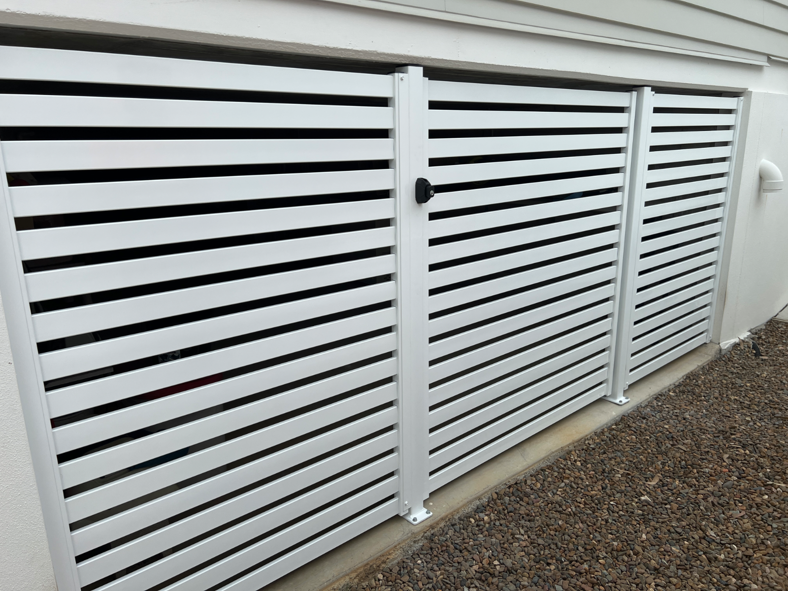 Aluminium or timber slat fencing, either as a vertical or horizontal installation is ideal for allowing sunlight and airflow while maintaining a measure of privacy and a barrier between you and what’s on the other side. Depending on the size of the gap between the slats will govern the amount of privacy and any security the fence is able to offer.